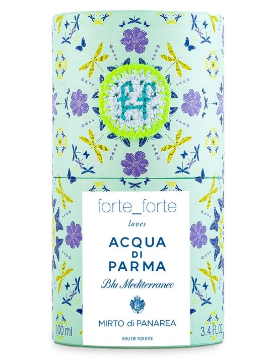 A delightful flight into the Mediterranean with a profound sense of rebirth and new beginnings. At the heart of the experience, a 100ml Mirto di Panarea eau de toilette expresses a splendid fragrance where the aromatic warmth of myrtle is combined with basil and sparkling citrus accents of lemon and Calabrian bergamot while sea breeze accents and fresh juniper notes meet jasmine and rose, bringing a feeling of calm and harmony. Notes of mastic and juniper together with cedarwood and amber complete the fragrance and give it an intense closure. Surrounded by an infinity of butterflies and dragonflies brilliantly captured in a kaleidoscopic print of emotions that adorn Acqua di Parma’s signature cylinder box and the fragrance bottle, the Italian sun shines as a ‘Sole’ crochet centerpiece radiating warmth and light to the vivid and luminous atmosphere of Panarea. And for the perfect finishing touch, a playful scoubidou bracelet featuring intertwining ribbons and a gold metal charm embellishes the bottle cap. Embodying joyful and fluid movements synonymous with life and rebirth, the bracelet is a playful and versatile accessory that can be worn in many ways. The innovative packaging is made from FSC paper while the bottle has a removable screw pump for easy waste disposal. 3.4 oz. Made in Italy.