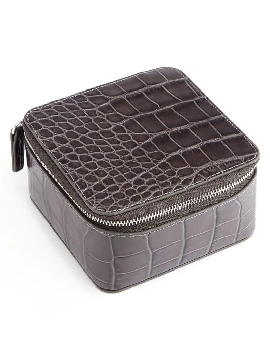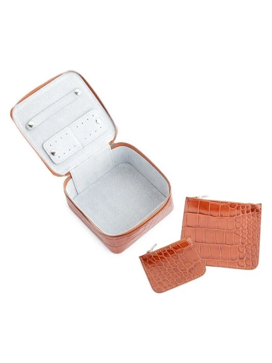 This luxe croc embossed leather jewelry case timelessly stores your pieces.