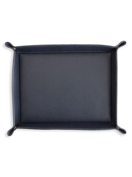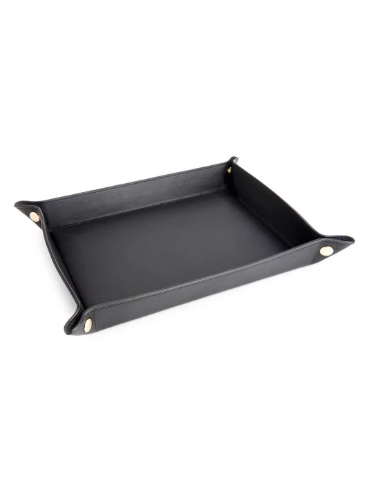 Stay effortlessly organized with this refined leather catchall tray. The plush leather interior ensures delicate jewelry and heirlooms are not scratched. Four corners can be unsnapped to easily fit in luggage and placed on a hotel nightstand, to ensure no valuables are left behind.