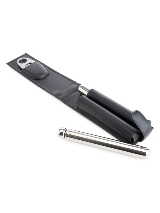 The ideal gift for any liquor and cigar connoisseur, this grained leather carrying case includes a stainless steel cigar holder, cigar cutter and 2.5 oz. cylinder flask.