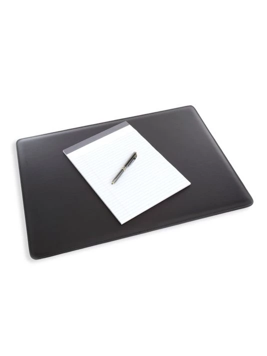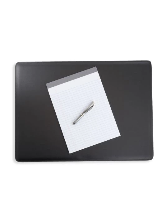 This handcrafted leather desk pad elevates a home office or workspace with its distinguished executive aesthetic. The blotter will protect the desk or table from scratches and stains and will allow for more comfortable typing on a raised surface.