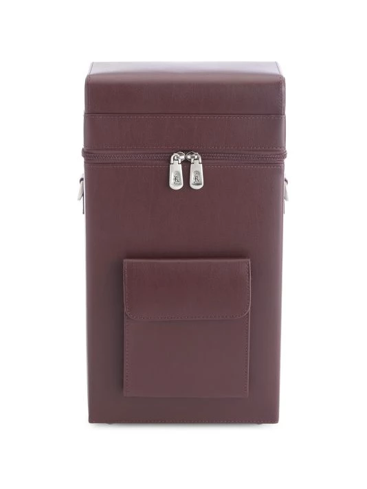 Perfect for a picnic, dinner party or BYO restaurant, this elegant leather carrying case will securely store two bottles of wine or champagne and keeps them insulated with a padded, velvet interior. The bag can easily be carried using its matching leather shoulder strap with a drop length of 18″. It’s front snap compartment enables convenient access to a corkscrew. Royce branded corkscrew, featuring handmilled hardware, also included.