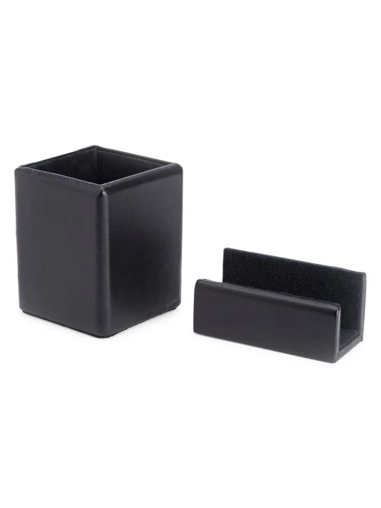 Boardroom ready. Designed for the contemporary executive, this ROYCE office collection features handmade genuine leather desk pencil cup organizer and genuine leather business card display holder. Both are lined with luxurious grey suede.