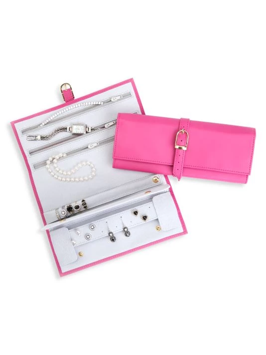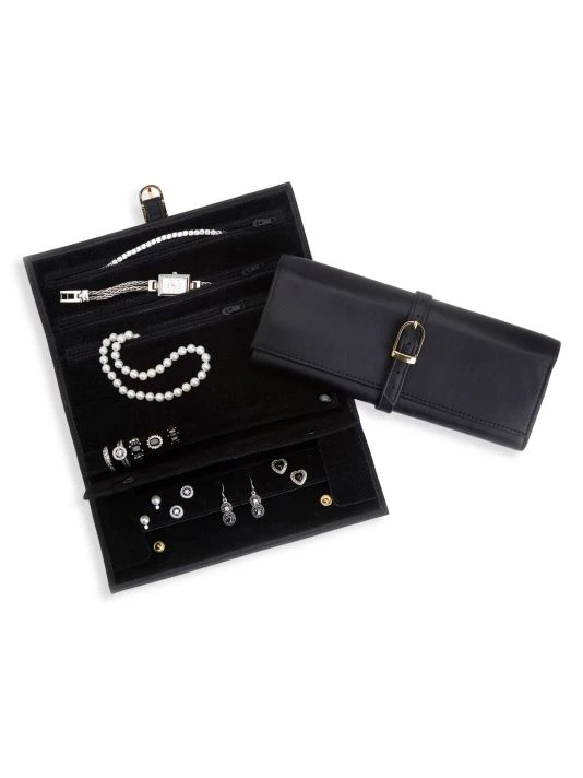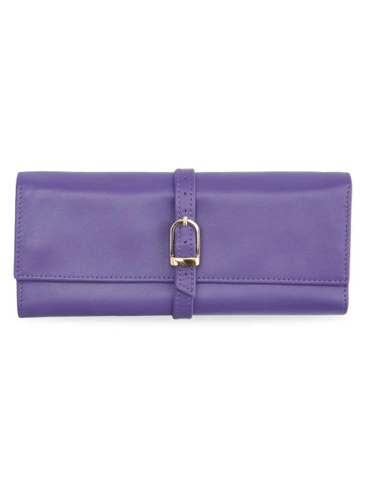Securely travel with sufficient space for all your fine jewels in this handcrafted American leather jewelry roll, elegantly lined with suede.