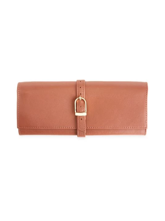 Securely travel with sufficient space for fine jewels in this handcrafted American leather jewelry roll, elegantly lined with suede.